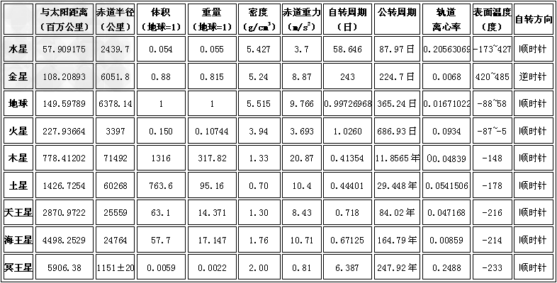 注:冥王星已經(jīng)在2006年被剔除於九大行星之列,目前成為矮行星之一,太陽(yáng)系僅剩下八大行星。
