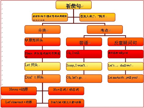 表示請求或命令的句子是祈使句。祈使句一般用降調(diào),為使祈使句聽起來比較婉轉(zhuǎn),可用低聲調(diào),祈使句句末用句號(hào)或感嘆號(hào)。祈使句有兩種類型:含有第二人稱和帶有第一、三人稱主語的祈使句。每種類型又有肯定形式和否定形式。用don't否定時(shí),只能用其縮略形式。