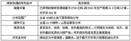 一、山西煤炭的資源條件: