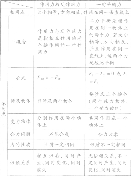 。相互作用力與一對平衡力的對比: