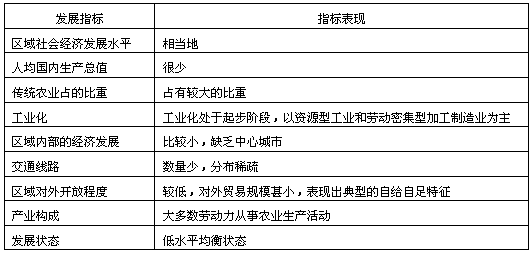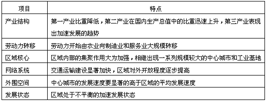 | 初期階段 | 由一個(gè)或少數(shù)幾個(gè)因素作為凝聚力量,區(qū)域內(nèi)經(jīng)濟(jì)單一,城鎮(zhèn)數(shù)量少 | 基本協(xié)調(diào) |