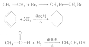 | 加成反應(yīng) | 有機(jī)物分子中雙鍵(或三鍵)兩端的碳原子與其他原子或原子團(tuán)直接結(jié)合生成新的化合物的反應(yīng) | ![]() |
