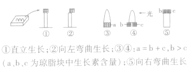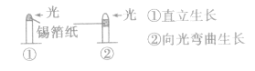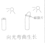 | 用錫箔遮住胚芽鞘尖端下段,給予單測光照射 | ![]() | ||