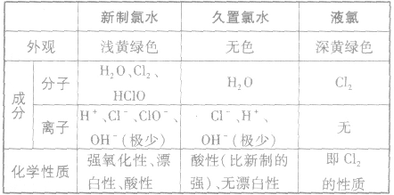(2)新制氯水、久置氯水、液氯的區(qū)別