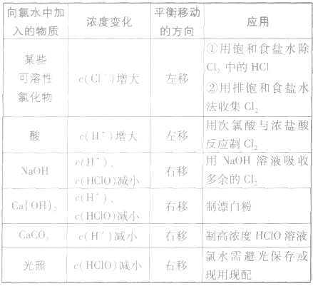 氯氣溶于水形成的溶液叫氯水,新制的氯水呈淺黃綠色,有刺激性氣味。氯水中存在三個(gè)平衡: