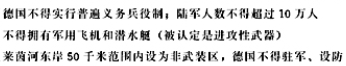 關(guān)于允許德國陸軍擁有10萬人:說明其目的是能夠讓德國資產(chǎn)階級有足夠力量鎮(zhèn)壓國內(nèi)人民革命(當(dāng)時出現(xiàn)了戰(zhàn)后資本主義國家無產(chǎn)階級革命高漲局面),但這一數(shù)量的陸軍,又不能滿足德國對鄰國發(fā)動侵略戰(zhàn)爭的需要。