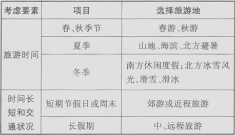②根據(jù)時間長短和季節(jié)選擇旅游地:
