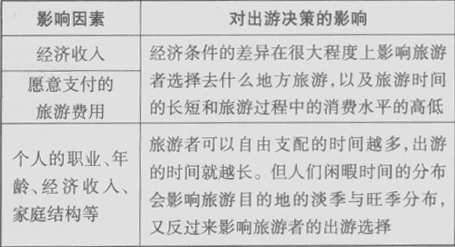 (2)影響出游決策的客觀因素: