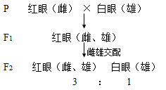 c、F2中紅眼:白眼=3:1——符合分離定律,紅眼和白眼受一對(duì)等位基因控制;