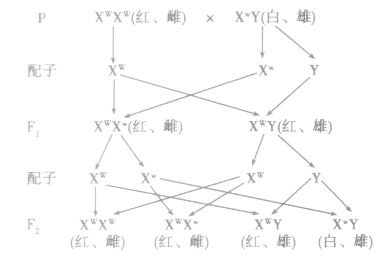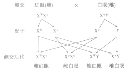 ②假設(shè)與解釋假設(shè)控制果蠅白眼的基因(用w表示)位于X染色體上,而Y染色體上不含有它的等位基因,其遺傳圖解可表示為: