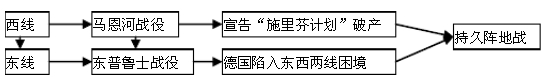 2、西線:馬恩河戰(zhàn)役:第一次大規(guī)模戰(zhàn)役,德國速戰(zhàn)速決戰(zhàn)略破產(chǎn),德國陷入長期兩線作戰(zhàn)。1914年底,西線進入相持階段。