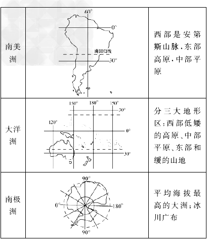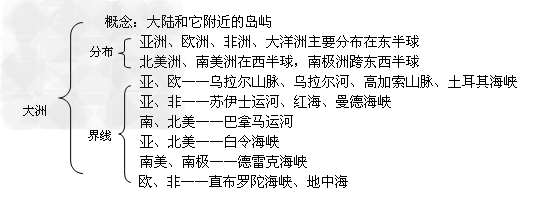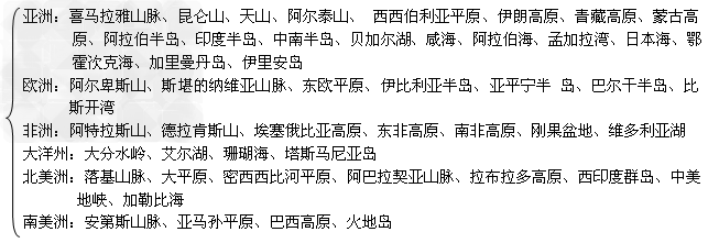 大陸:亞歐(最大)、非洲、北美、南美、南極、澳大利亞六塊大陸