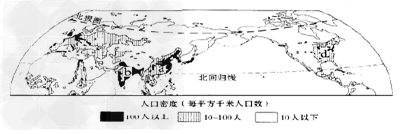 (3)分布及原因:稠密地區(qū):亞洲東部、南部,歐洲及北美東部稠密地帶:北半球中低緯近海地帶原因:平原面積廣闊,氣候溫暖濕潤,農(nóng)業(yè)歷史悠久,工交、城市發(fā)達(dá)。稀疏地區(qū):寒冷地帶,未開發(fā)的熱帶雨林、干旱荒漠、地勢高峻的高原、山地