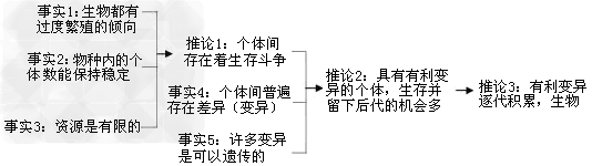 達爾文進化論的內(nèi)容:過度繁殖,生存斗爭,遺傳變異和適者生存。