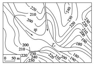 (1)確定水庫(kù)庫(kù)址與大壩壩址水庫(kù)庫(kù)區(qū)宜選擇在河谷、山谷地區(qū)或選在口袋形的洼地、小盆地,這些地區(qū)庫(kù)容大,有較大的集水面積(如上圖中甲處)。水庫(kù)壩址則應(yīng)選在河谷、山谷地區(qū)的最窄處或口袋形的洼地、小盆地的袋口處(如上圖中乙處),確定壩高時(shí)應(yīng)依據(jù)出口處等高線的高程(如上圖中應(yīng)選擇200米高程),壩長(zhǎng)可依據(jù)比例尺計(jì)算得出。