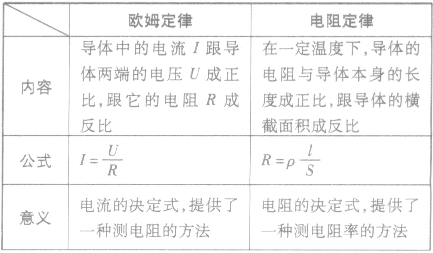 歐姆定律與電阻定律:
