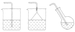 實驗中導(dǎo)管和漏斗的位置的放置方法: