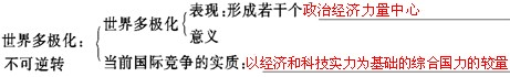(1)表現(xiàn):世界正在形成若干個(gè)政治經(jīng)濟(jì)力量中心。以美國、歐盟、俄羅斯、中國、日本等為代表。