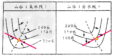 ①陡崖高度計(jì)算方法:(x-1)d≤ΔH<(x+1)d (d為相鄰兩條等高線的差即等高距,X為重疊的等高線條數(shù))