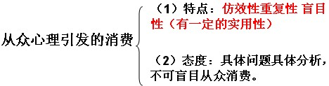 | 從眾心理引發(fā)的消費(fèi) | 仿效性盲目性 | 健康合理的從眾心理可帶動某一產(chǎn)業(yè)的發(fā)展。比如:綠色消費(fèi)帶動綠色產(chǎn)業(yè)的發(fā)展 | 不健康、不合理的從眾心理消費(fèi)誤導(dǎo)經(jīng)濟(jì)的良性發(fā)展,對個(gè)人生活不利 | 消費(fèi)是否應(yīng)該從眾,要做具體分析。盲目從眾是不可取的 |