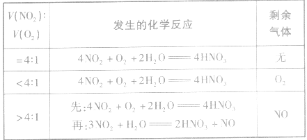 一般NO、NO2、O2與水反應(yīng),可歸納成四種情況: