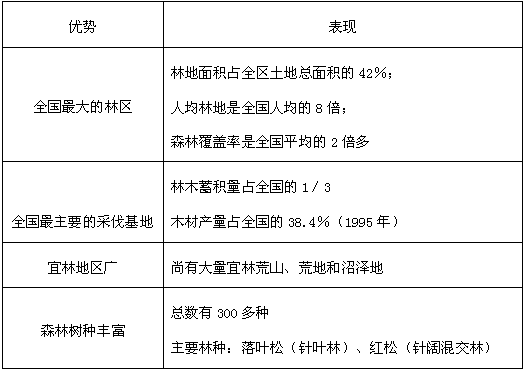 (3)森林資源優(yōu)勢