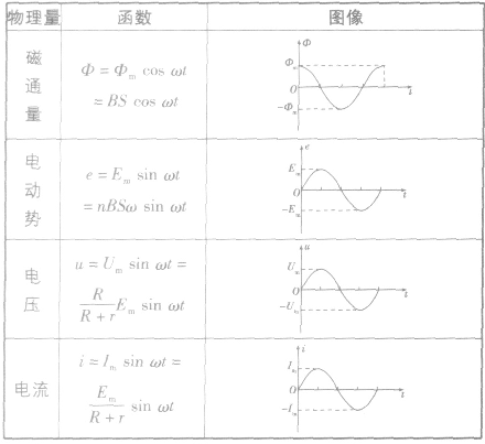 正弦交流電的電動勢e、電流i、和電壓u,其變化規(guī)律可用函數(shù)圖像描述。