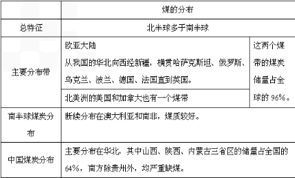 總特征:各種化石燃料在地球上分布很不均衡。