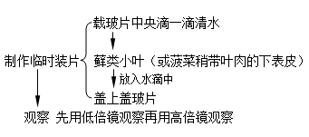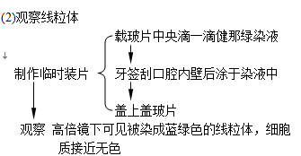 (2)原因: ①蘚類葉片僅有一層葉肉細胞。 ②菠菜葉接近下表皮的葉肉細胞是海綿組織,細胞排列疏松,細胞分散,易撕取,便于觀察。