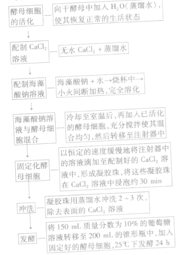 (1)配制海藻酸鈉溶液:小火、間斷加熱、定容,如果加熱太快,海藻酸鈉會(huì)發(fā)生焦糊。