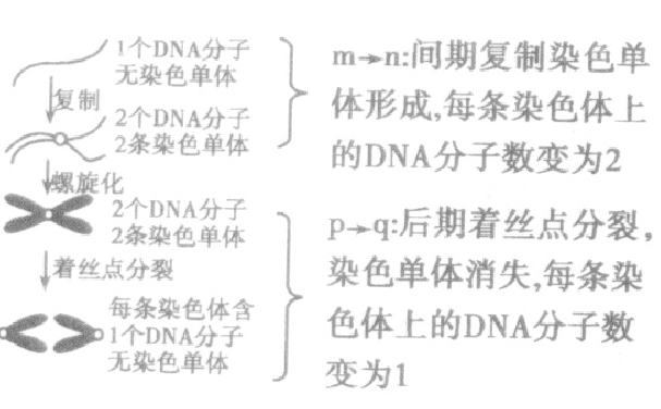 2、間期DNA分子復(fù)制使DNA含量加倍,但染色體沒加倍,而是每條染色體上含有2條姐妹染色單體;染色體加倍發(fā)生在后期著絲點(diǎn)分裂時(shí);DNA和染色體數(shù)目減半的原因相同。