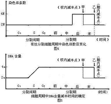 注:1、細(xì)胞內(nèi)和細(xì)胞核內(nèi)的數(shù)目減半的時(shí)間是不一樣的(圖中已標(biāo)),原因是在有絲分裂的末期,先形成細(xì)胞核,后分裂成兩個(gè)子細(xì)胞,所以細(xì)胞核內(nèi)的數(shù)目減半點(diǎn)是在末期開始,而細(xì)胞內(nèi)的數(shù)目減半是在末期完成時(shí)。