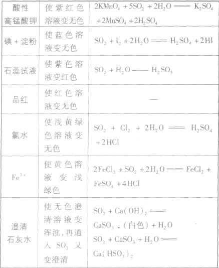 SO2與一些物質(zhì)反應(yīng)的實(shí)驗(yàn)現(xiàn)象: