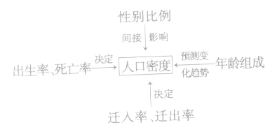 1、一個(gè)國(guó)家或地區(qū)的全部人口可以看做一個(gè)種群,它同樣具有種群的特征,其相互關(guān)系如下: