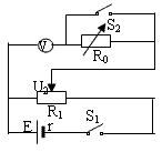 電路如圖:實驗時,將R1的滑動片P放在左邊,合上S1和S2,調(diào)節(jié)R1,使電壓表的讀數(shù)滿偏;保持R1不變,斷開S2,調(diào)節(jié)R0,使電壓表的讀數(shù)為滿刻度的一半。則RV=R0。