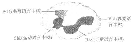 | W區(qū)(書寫語言中樞) | 不能寫字(聽得懂、看得懂) | 失寫癥 |