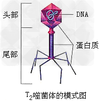 (2)T2噬菌體是一種專門寄生在大腸桿菌體內(nèi)的病毒,它的頭部和尾部的外殼都是由蛋白質(zhì)構(gòu)成的,頭部內(nèi)含有DNA。T2噬菌體侵染大腸桿菌后,就會在自身遺傳物質(zhì)的作用下,利用大腸桿菌體內(nèi)的物質(zhì)來合成自身的組成成分,進(jìn)行大量增殖。當(dāng)噬菌體增殖到一定數(shù)量后,大腸桿菌裂解,釋放出大量的噬菌體。