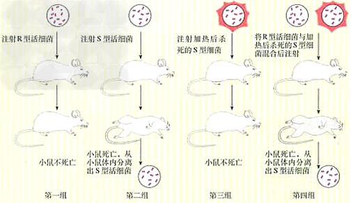 c、實驗原理:S型肺炎雙球菌使小鼠患敗血病死亡;R型肺炎雙球菌是無毒性的。