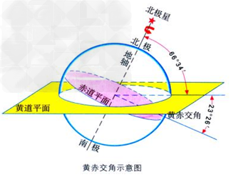 (1)赤道平面和黃道平面的交角。目前是23o26'。