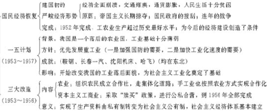 b.從任務(wù)上看,前三年(1949~1952年)是國民經(jīng)濟(jì)恢復(fù)時(shí)期;后四年(1953~1956年)是社會(huì)主義改造時(shí)期,其實(shí)質(zhì)是將生產(chǎn)資料私有私制改造為社會(huì)主義公有制。