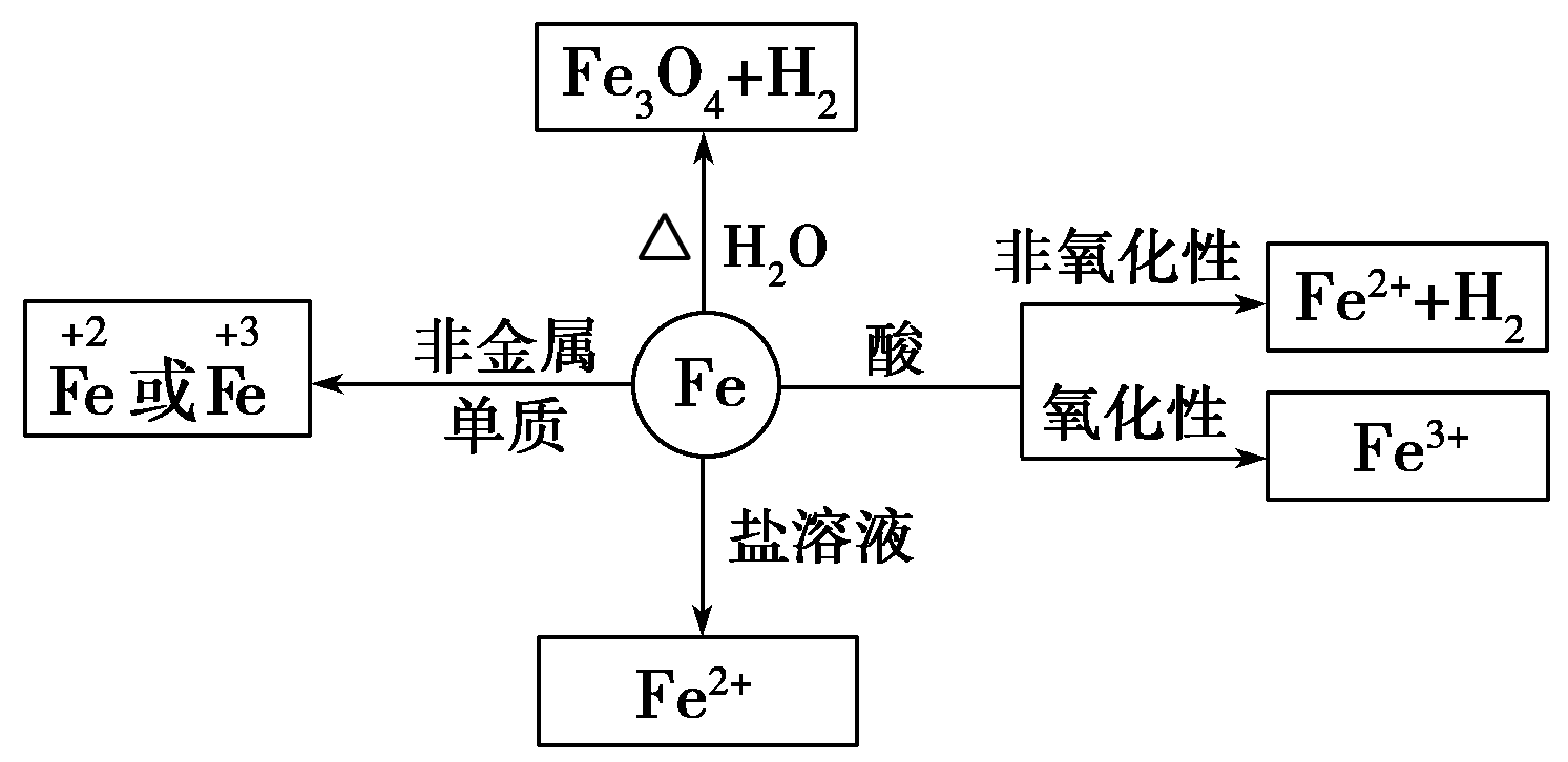 (2)溶解性:溶于鹽酸、稀硫酸生成+3價鐵鹽;難溶于水,不與水反應。