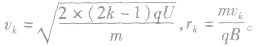 第k次進入左半盒時,經電場加速(2k一1)次,進入左半盒時速度和半徑為