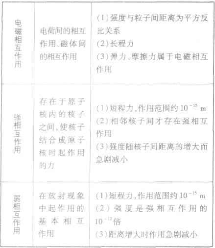 高中物理知識點:四種基本相互作用