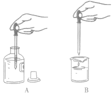 滴管是用來吸取或滴加少量試劑的一種儀器。滴管上部是橡膠乳頭,下部是細(xì)長尖嘴的玻璃管。使用滴管時,用手指捏緊橡膠乳頭,趕出滴管中的空氣,然后把滴管伸入試劑瓶中,放開手指,試劑被吸入(如 A圖)。取出滴管,把它懸空在容器(如燒杯、試管) 上方(不要接觸器壁,以免沾污滴管或造成試劑的污染),然后用拇指和食指輕輕擠橡膠乳頭,試劑便滴入容器中(如B圖)。