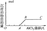 ≥4時,所得沉淀的物質(zhì)的量:n[Al(OH)3]=0