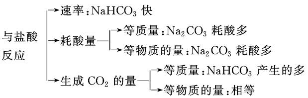 | 化學(xué)性質(zhì) | 與鹽酸反應(yīng) | Na2CO3+2HCl=2NaCl+H2O+CO2↑ | NaHCO3+HCl=NaCl+H2O+CO2↑ |