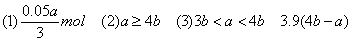 (1)當(dāng)a≤3b時,只發(fā)生第一個反應(yīng),此時NaOH不足量,產(chǎn)生沉淀的量取決于NaOH。3n[Al(OH)3]=n(NaOH)?。所以答案為0.05a/3mol。
