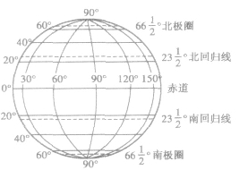 ①當(dāng)把地球看作一個球時,經(jīng)線是指球面上從北極到南極的半個大圓.緯線是指垂直于地軸的一組平行平面所截得的圓,緯線除了赤道是大圓外,其余都是小圓.如圖所示.