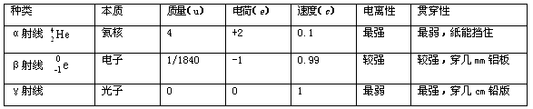 各種放射線的性質(zhì)比較: