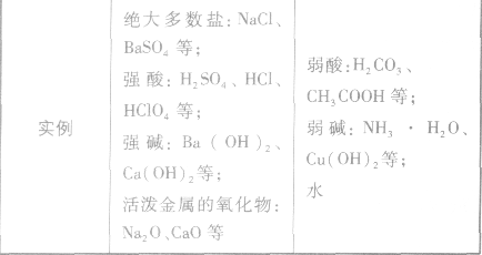 在水溶液里或熔融狀態(tài)下,能全部電離的化合物。包括:強酸、強堿、大多數(shù)鹽、活潑金屬氧化物等;完全電離、不可逆、不存在電離平衡;電離方程式用“=”表示。